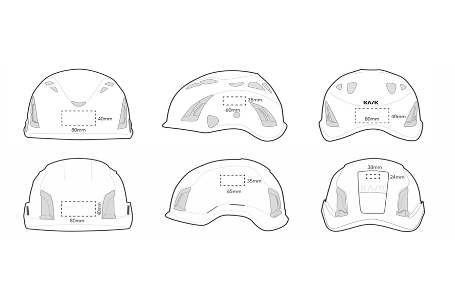 Die von KASK angegeben Beklebungsmöglichkeiten betreffen die Standard-Aufkleber. Natürlich ist es auch möglich eine personalisierte Beklebung durchzuführen.