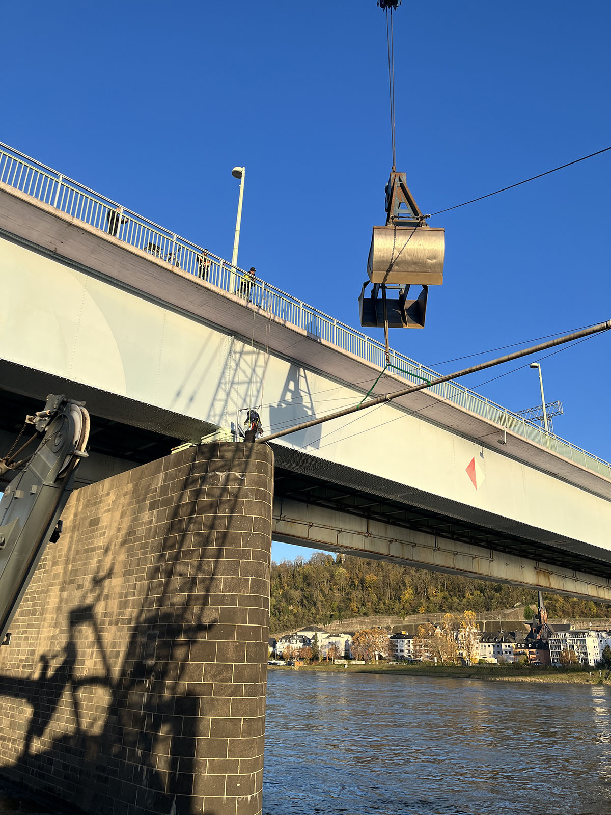 Heimspiel für das Team Höhenpass: Im Rahmen des Neubaus der Pfaffendorfer Brücke waren wir kürzlich im Auftrag des Bauunternehmens Fritz Meyer in Koblenz unterwegs. Wie genau dieser Auftrag aussah, und welch außergewöhnliche Hilfsmittel wir dafür einsetzen mussten, erfahrt ihr in diesem spannenden Einsatzbericht.