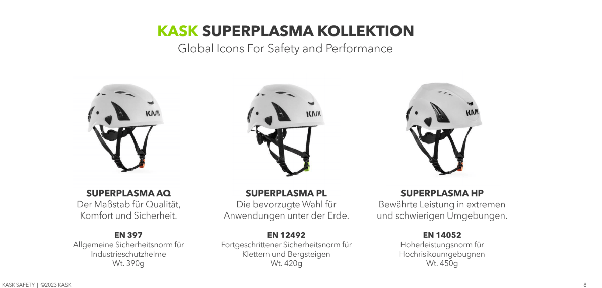 Alle genannten, aktualisierten Produkte gehören zur neuen „SUPERPLASMA SERIES“ und tragen diese auch nun im Namen. KASK hat sich also nun endlich für eine Vereinheitlichung der Produktbezeichnungen entschieden, und orientiert sich dabei am Namen ihres „Global Icons“, dem Schutzhelm Superplasma.
